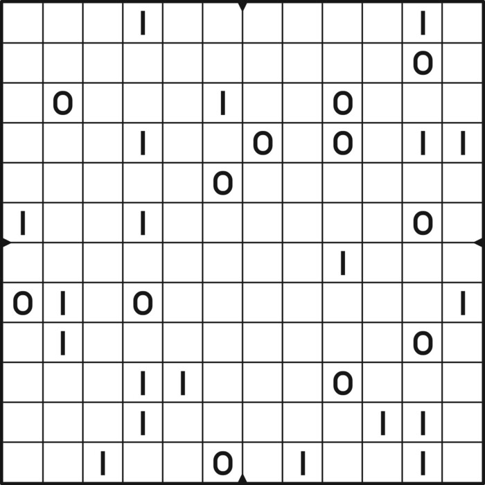A daily binairo puzzle! Solve each puzzle with only 0's and 1's. Remember: No more than two the same numbers may be placed directly next to or below each other. Every row and every column must contain as many zeroes as ones. The combination of zeroes and ones in every row must be unique, as does the combination in each column.