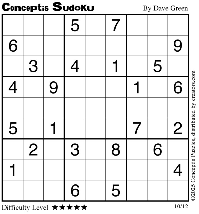 Each puzzle consists of a 9x9 grid containing given clues in various places. The object is to fill all empty squares so that the numbers 1 to 9 appear exactly once in each row, column and 3x3 box.
