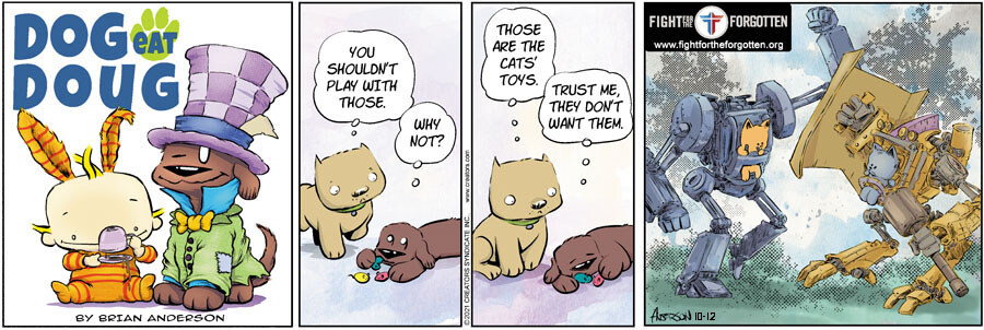 Written and illustrated by Brian Anderson, Dog Eat Doug began in 2004 as a webcomic. but in November 2005 it was picked up for syndication by Creators Syndicate.